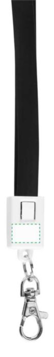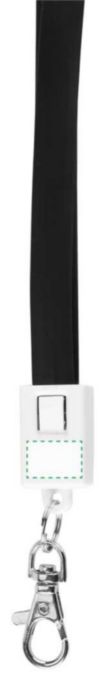 Schlüsselband 'Companion' mit Ladekabel aus TPE-Kunststoff und Karabinerhaken. Die Kabellänge beträgt ca. 90 cm, mit USB- und Micro-USB-Verbindung. Der Micro-USB-Stecker kann durch Drehen auch als Lightning Stecker verwendet werden.
