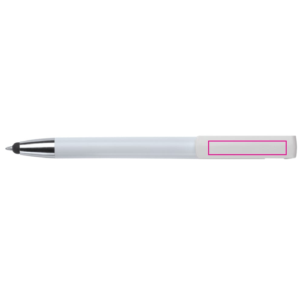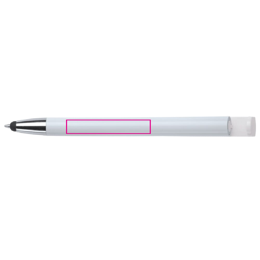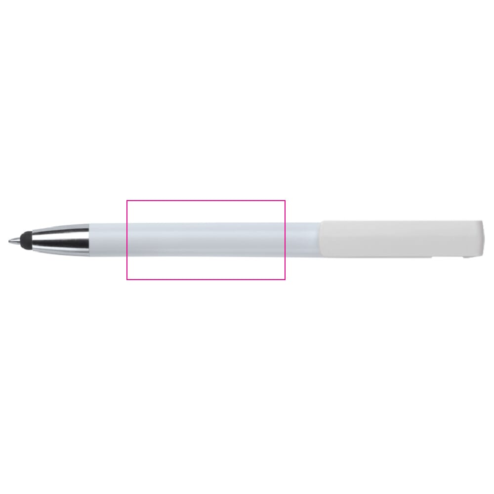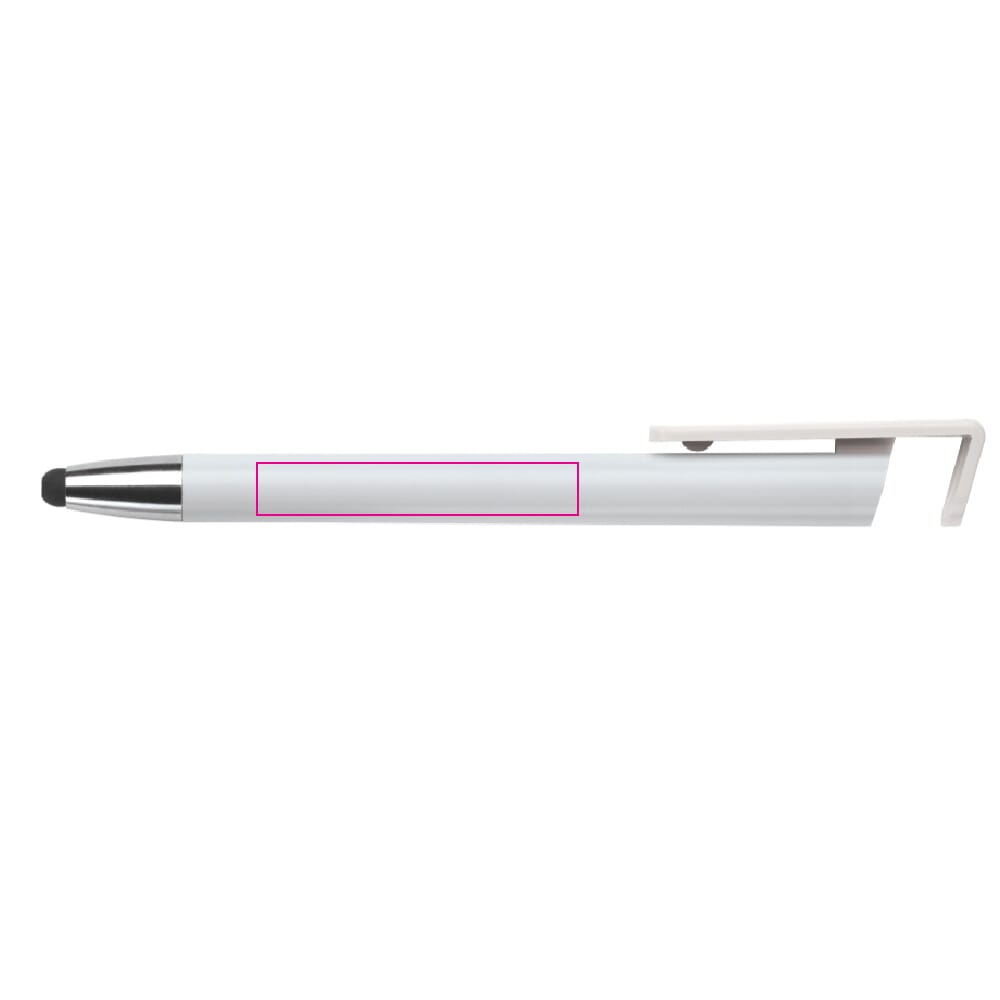 Ein moderner 3-in-1-Kugelschreiber mit Stylus und Telefonhalter. Ein sehr schönes Give Away in einem glatten Design. Blauschreibend.