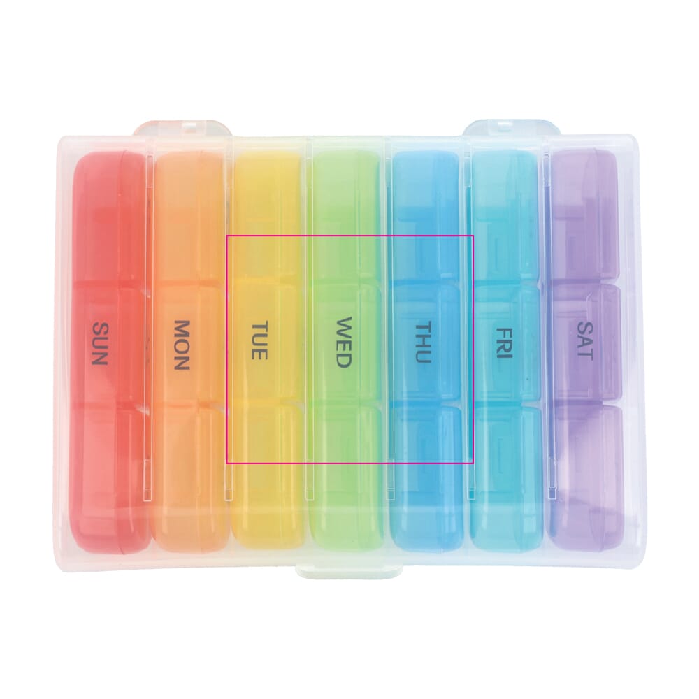 Die Joseph 7-Tage-Pillendose besteht aus strapazierfähigem PP und umfasst sieben einzelne Tagesboxen mit jeweils drei Fächern für morgens, mittags und abends. Das kompakte Format wurde für den organisierten täglichen Gebrauch entwickelt und lässt sich zu Hause oder auf Reisen leicht aufbewahren und transportieren.