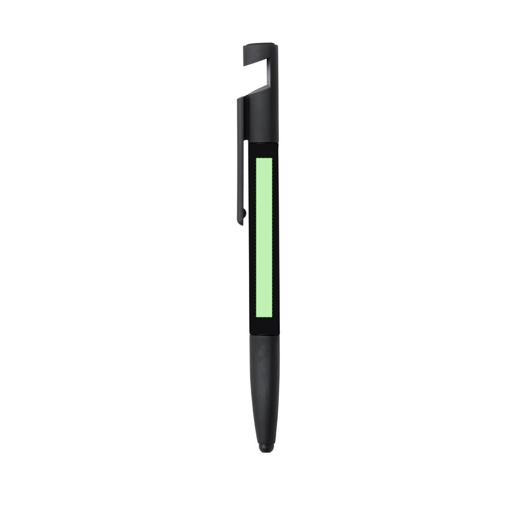 7-in-1 Dreh-Kugelschreiber in verschiedenen kräftigen Farben. Mit Ständer für Mobilgerät, Stylus, Displayreiniger, integriertem Lineal mit Skala in Zentimetern und Zoll, sowie Schlitz-und Kreuzschraubendreher. Blaue Tinte.