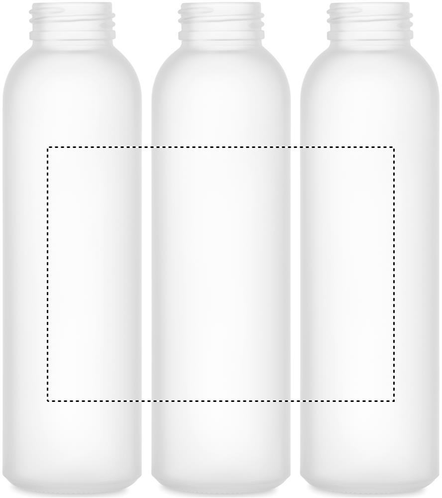Glasflasche mit gefrosteter Oberfläche und Deckel aus Bambus. Auslaufsicher. Füllmenge: 500 ml. Bambus ist ein natürliches Produkt, es kann daher zu leichten Abweichungen in Farbe, Dekor und Maßen kommen.