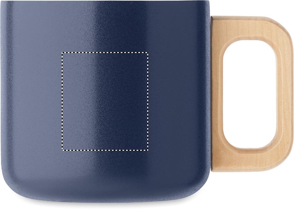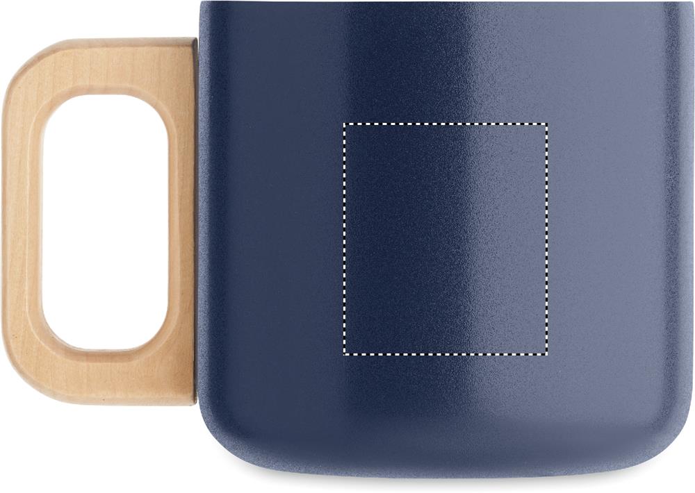 Doppelwandiger Becher aus recyceltem Edelstahl (90 % recycelter Edelstahl und 10 % Edelstahl). Griff aus Holz. Füllmenge: 350 ml.