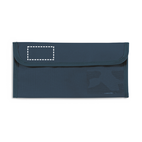Reisedokumententasche aus 600D mit zwei Innenfächern, ein Identifikationsfenster und einen Klettverschluss. 275 x 140 mm