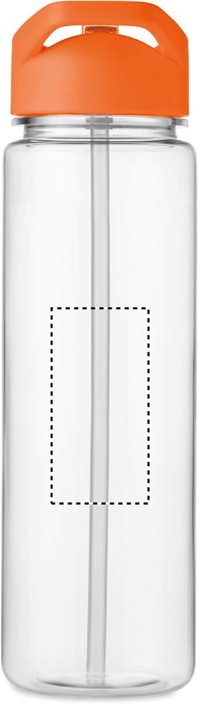 Trinkflasche aus RPET. Klappbares Mundstück aus PP mit Trinkhalm. Füllmenge: 650ml. Nicht für kohlensäurehaltige Getränke geeignet.