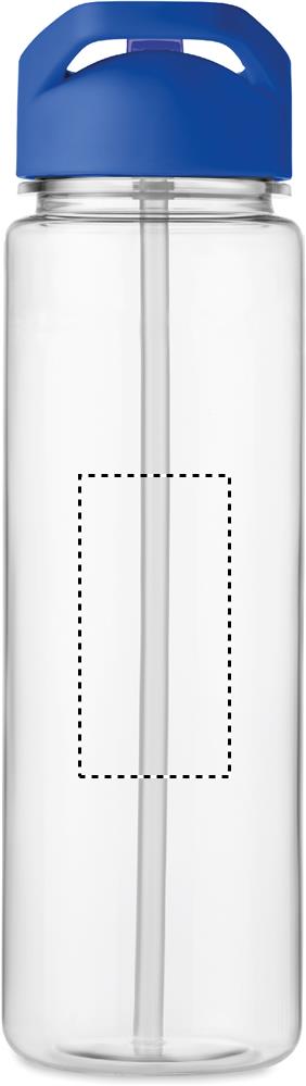 Trinkflasche aus RPET. Klappbares Mundstück aus PP mit Trinkhalm. Füllmenge: 650ml. Nicht für kohlensäurehaltige Getränke geeignet.