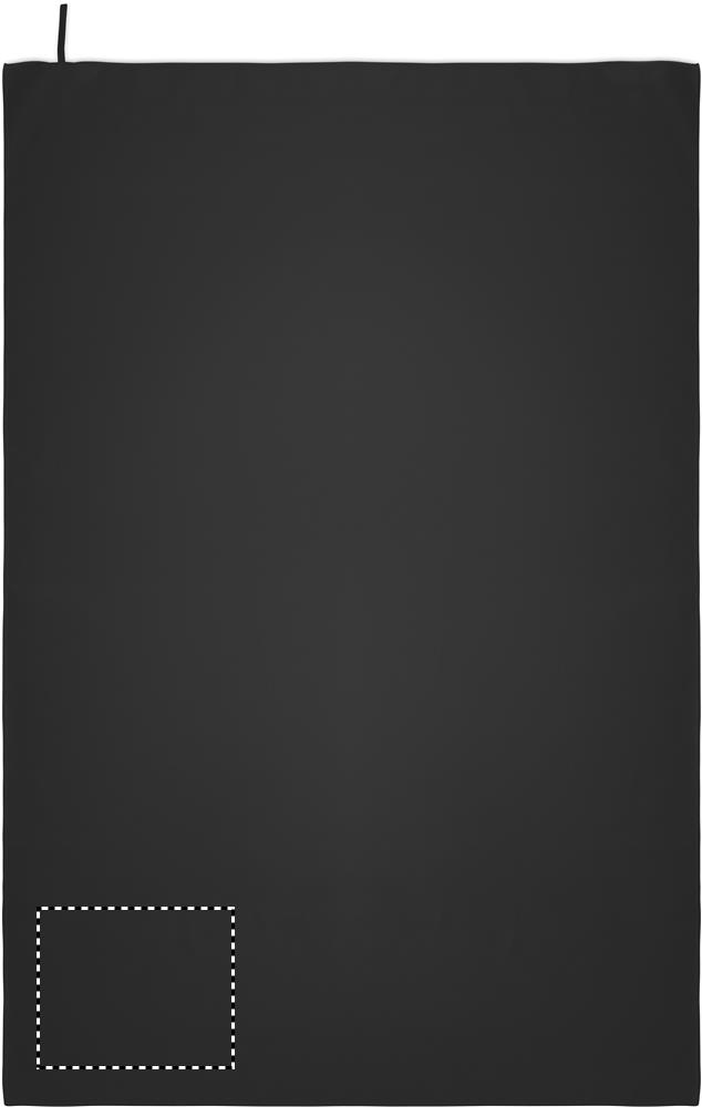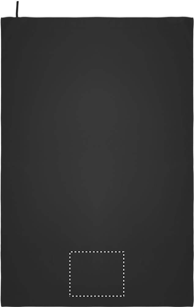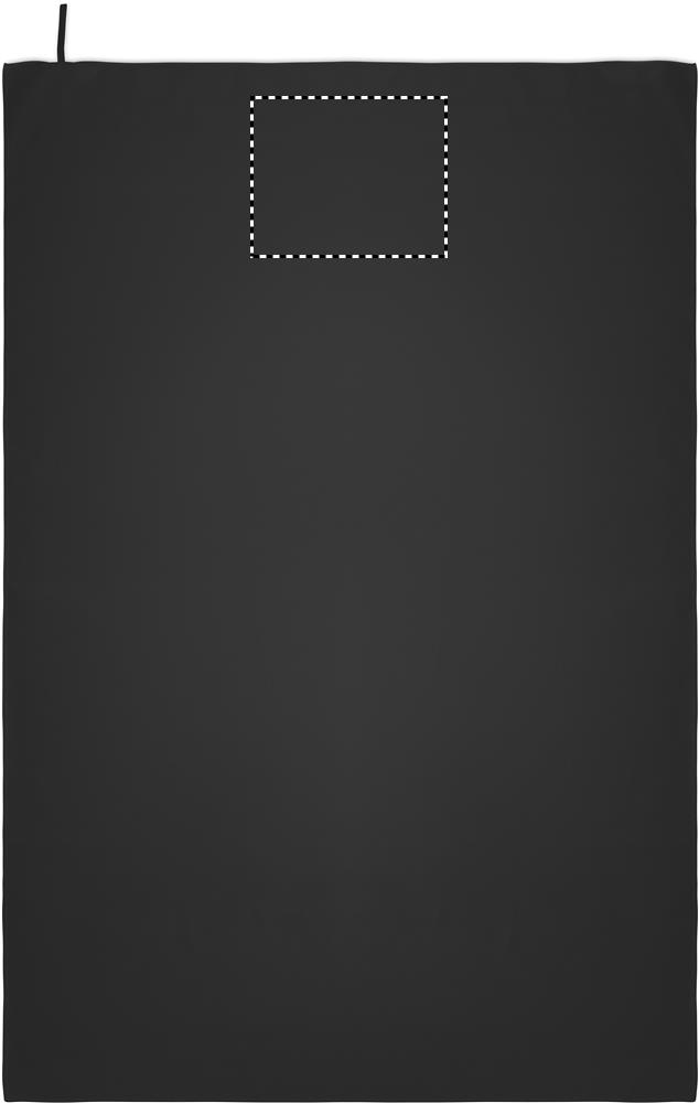 Handtuch aus Mikrofaser. 90% Polyester und 10% Polyamid mit Elastikschlaufe. Leicht und schnell trocknend. Maße: 100 x 150 cm.