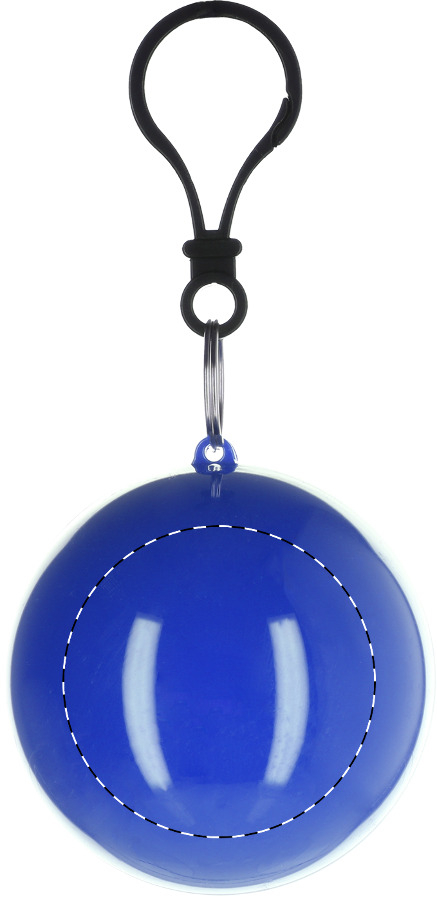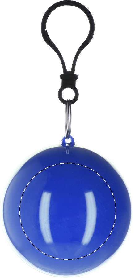 Regenponcho, gefaltet in rundem Schlüsselanhänger mit Karabiner.