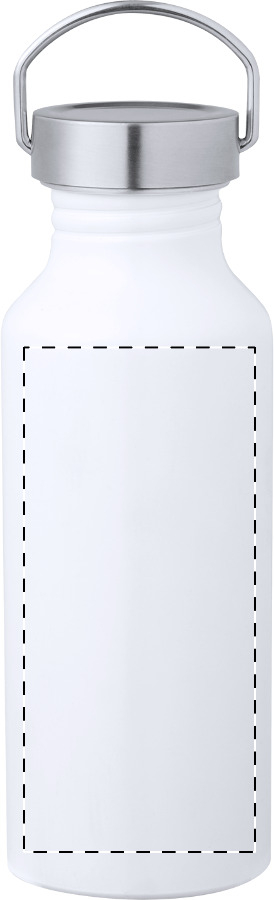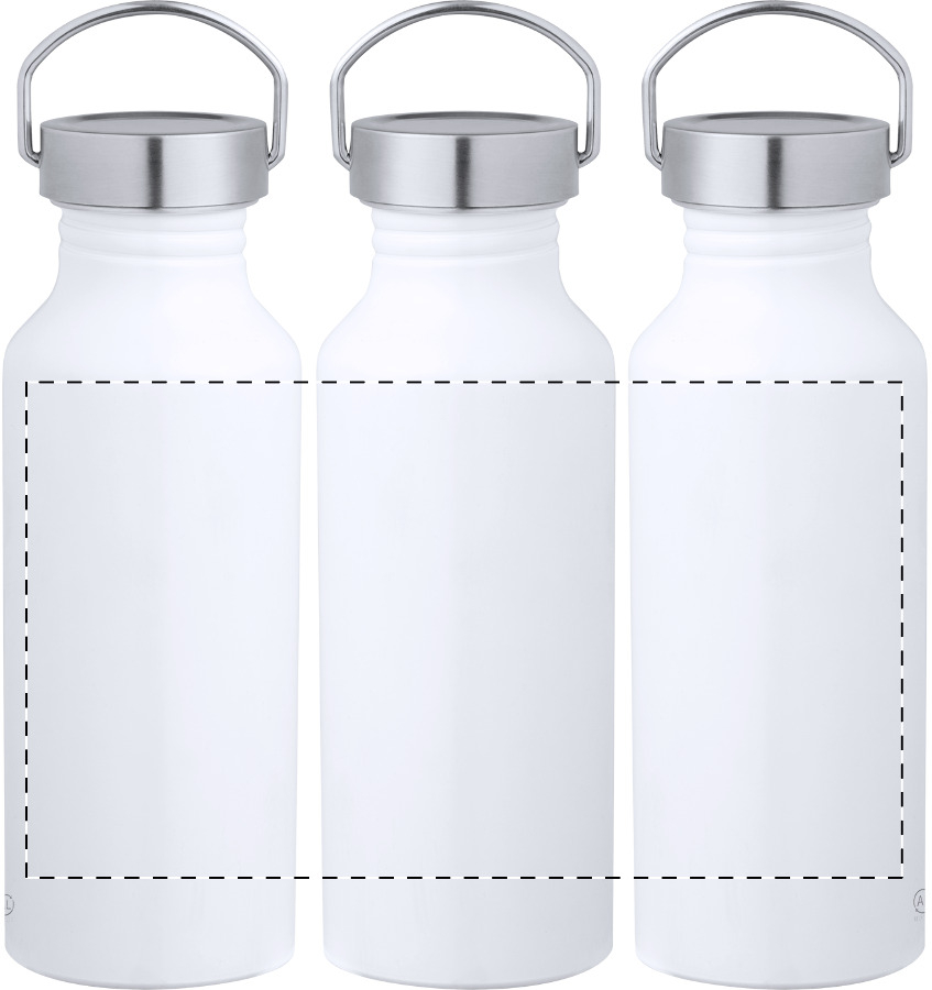 Trinkflasche aus receyceltem Aluminium mit Tragedeckel. Füllmenge: 650 ml.
