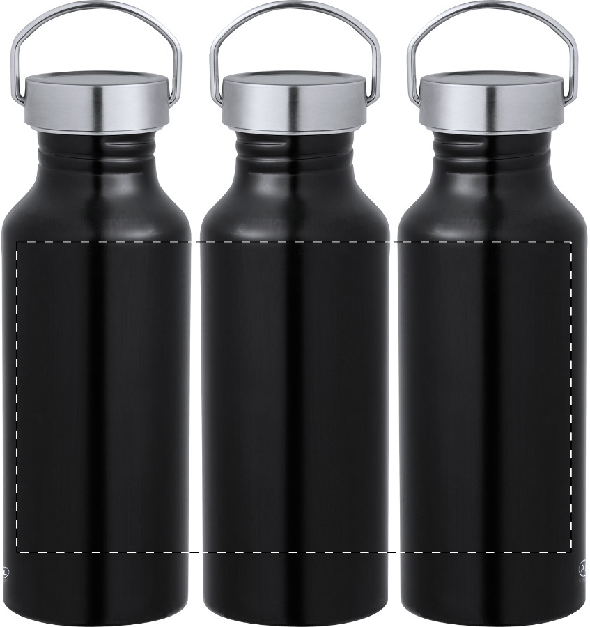 Trinkflasche aus receyceltem Aluminium mit Tragedeckel. Füllmenge: 650 ml.
