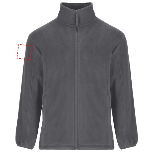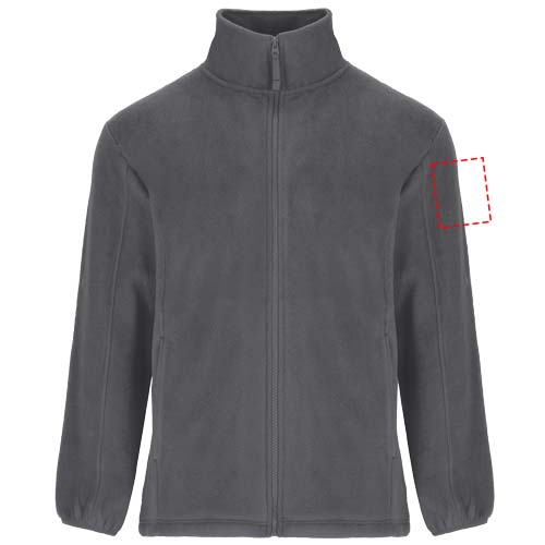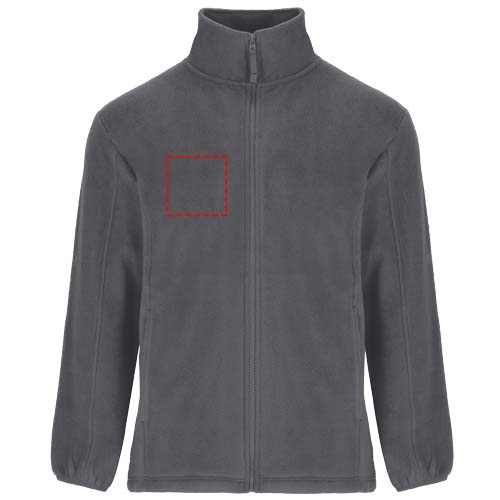 Fleecejacke mit gefüttertem Stehkragen und entsprechend verstärkten und verdeckten Nähten. Eingespritzter Reißverschluss mit passendem Zipper aus Stoff. Seitentaschen. Ärmelbündchen mit Gummizug. Unterer Saum mit seitlichem Reißverschluss. Herausnehmbares Etikett. Das Modell ist 185 cm groß und trägt Größe M.