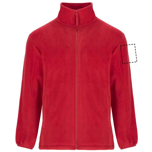 Fleecejacke mit gefüttertem Stehkragen und entsprechend verstärkten und verdeckten Nähten. Eingespritzter Reißverschluss mit passendem Zipper aus Stoff. Seitentaschen. Ärmelbündchen mit Gummizug. Unterer Saum mit seitlichem Reißverschluss. Herausnehmbares Etikett. Das Modell ist 185 cm groß und trägt Größe M.
