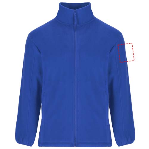 Fleecejacke mit gefüttertem Stehkragen und entsprechend verstärkten und verdeckten Nähten. Eingespritzter Reißverschluss mit passendem Zipper aus Stoff. Seitentaschen. Ärmelbündchen mit Gummizug. Unterer Saum mit seitlichem Reißverschluss. Herausnehmbares Etikett. Das Modell ist 185 cm groß und trägt Größe M.