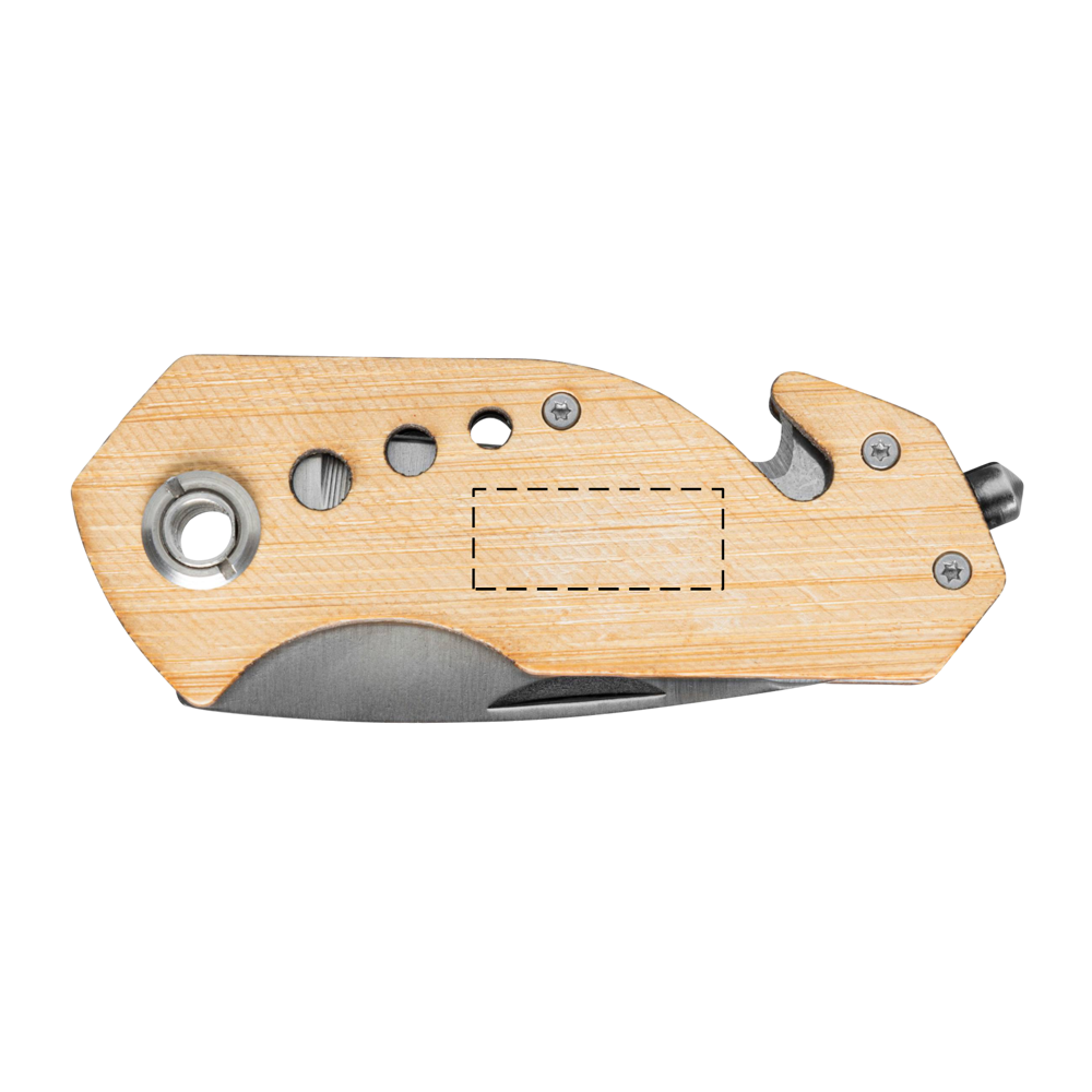 Multifunktionsmesser BAMBOO HIT: mit Klappmechanismus, breiter Klinge aus Edelstahl, integriertem Gurtschneider, Notfallhammer und praktischem Befestigungsclip, mit Bambus-Applikation am Griff, in Box