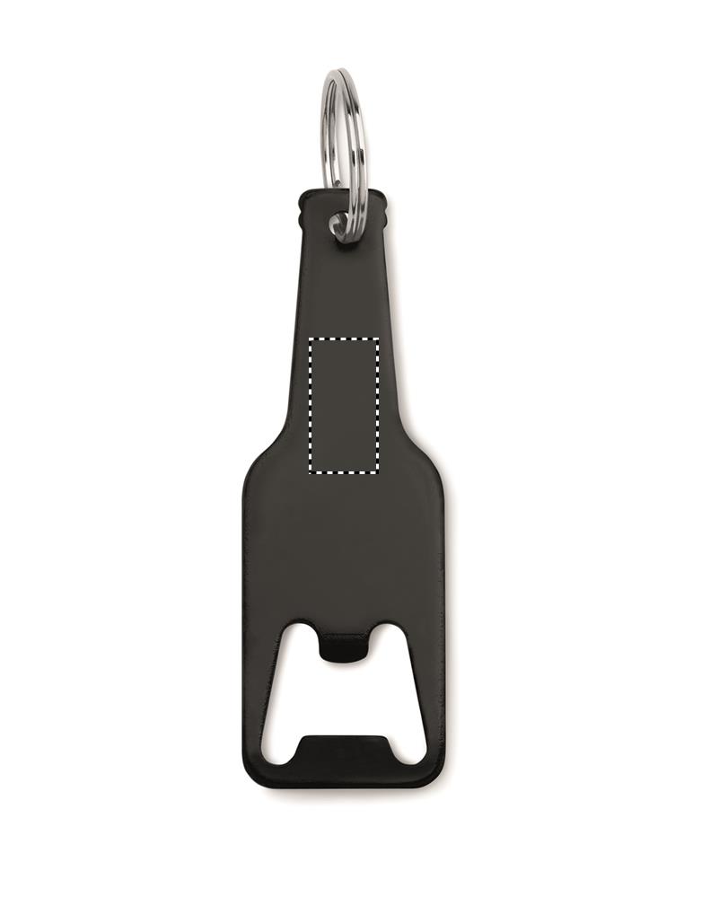 Schlüsselring mit Kapselheber in Form einer Flasche. Aluminium.