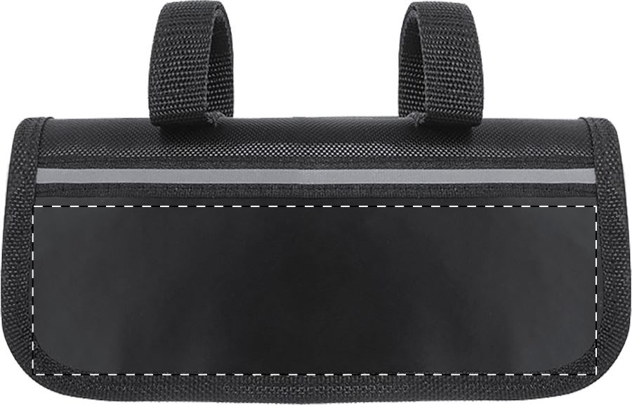 Fahrrad-Reparaturset im praktischem Fahrradrahmenetui (600D Polyester). Beinhaltet: Multitool mit 15 Funktionen, Sechskantschlüssel, Mini-Pumpe und Reifenpannen-Reparaturkit (2 Reifenheber, Schleifpapier und 6 Reifenflicken).