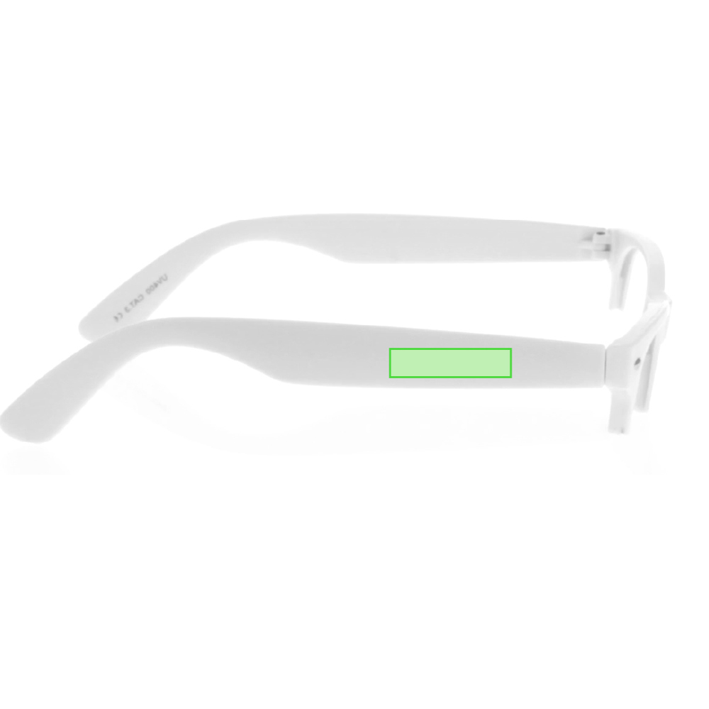 Brillengestell in glänzender Ausführung in klassischem Weiß. Mit spezieller Stanzung für das Einsetzen von Gläsern (separat erhältlich).