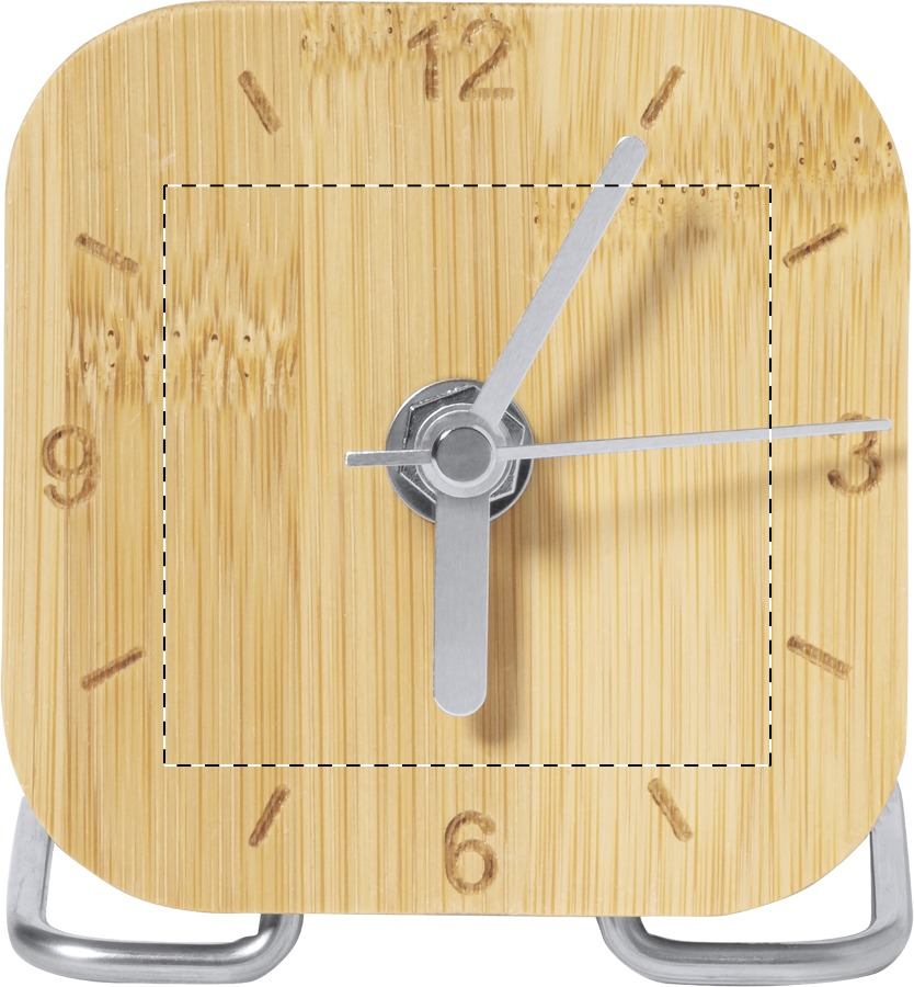 Tischuhr aus Bambus und Edelstahl. Betrieb mit 1 AA-Batterie, Lieferung ohne Batterie.