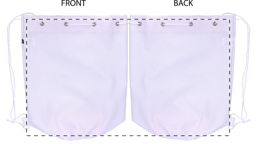 Individueller Kordelzug-Seesack aus 600D RPET Polyester mit farbigen Bändern, RPET-Label und All-Over-Sublimationsdruck. Mindestmenge: 25 Stk.