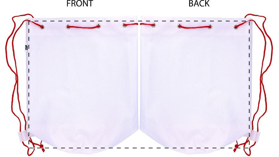 Individueller Kordelzug-Seesack aus 600D RPET Polyester mit farbigen Bändern, RPET-Label und All-Over-Sublimationsdruck. Mindestmenge: 25 Stk.