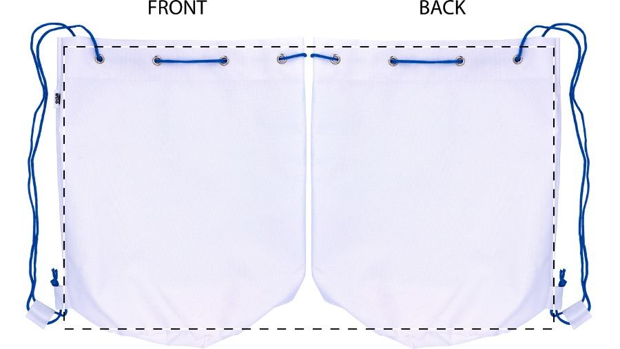 Individueller Kordelzug-Seesack aus 600D RPET Polyester mit farbigen Bändern, RPET-Label und All-Over-Sublimationsdruck. Mindestmenge: 25 Stk.