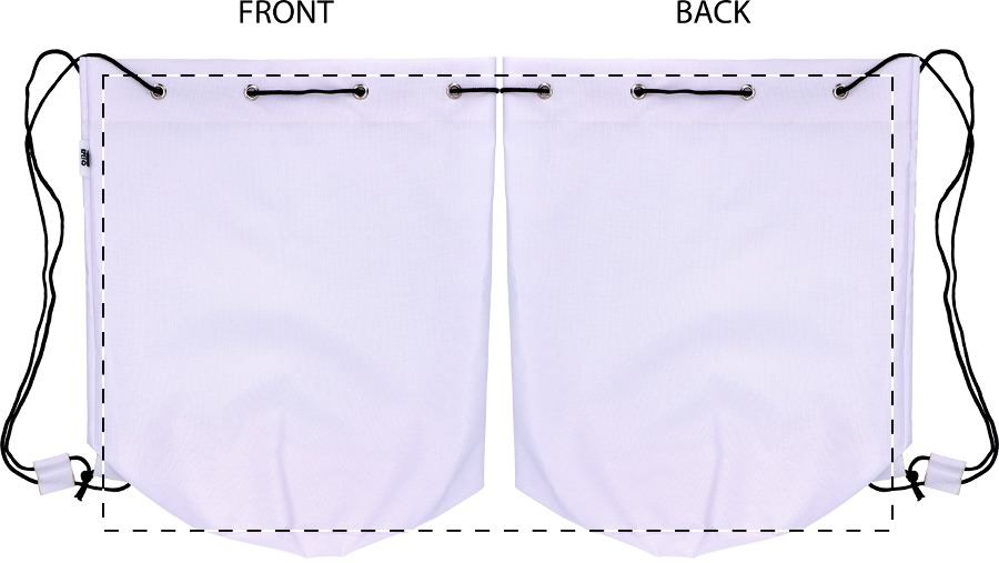 Individueller Kordelzug-Seesack aus 600D RPET Polyester mit farbigen Bändern, RPET-Label und All-Over-Sublimationsdruck. Mindestmenge: 25 Stk.