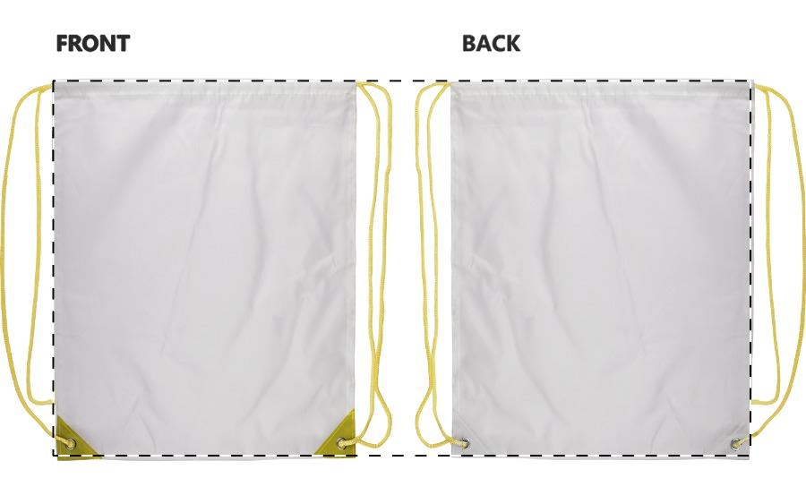 Individueller Turnbeutel mit verstärkten Ecken aus Kunstleder und farblich angepassten Zugkordeln, Material: 190T Polyester. Der Preis ist inkl. vollflächigem Sublimationsdruck. Mindestmenge: 25 Stk.
