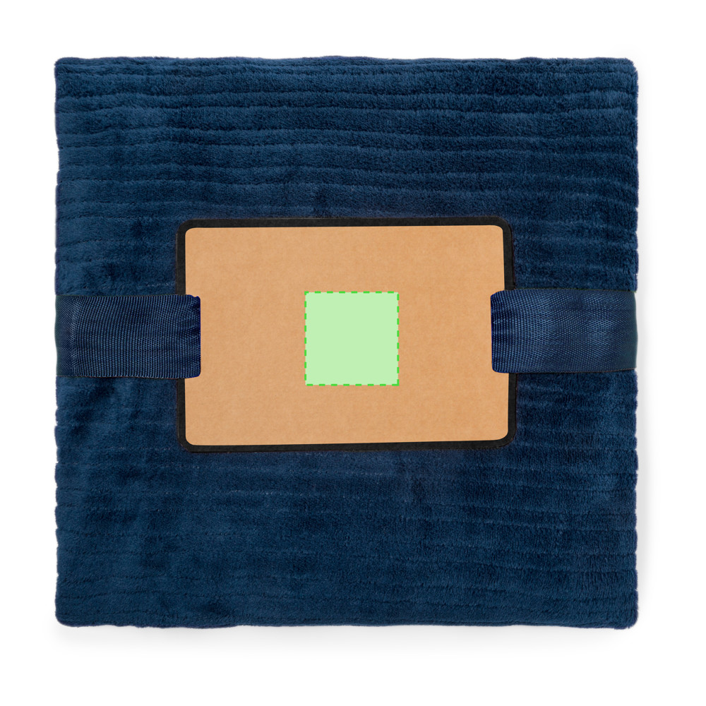 Decke aus 240g/m2 Polyester, sehr bequem, weich und warm. Erhältlich in verschiedenen Farben und präsentiert in einem Band mit einer Karte zum einfachen Bedrucken, in einer individuellen recycelten Tasche.
