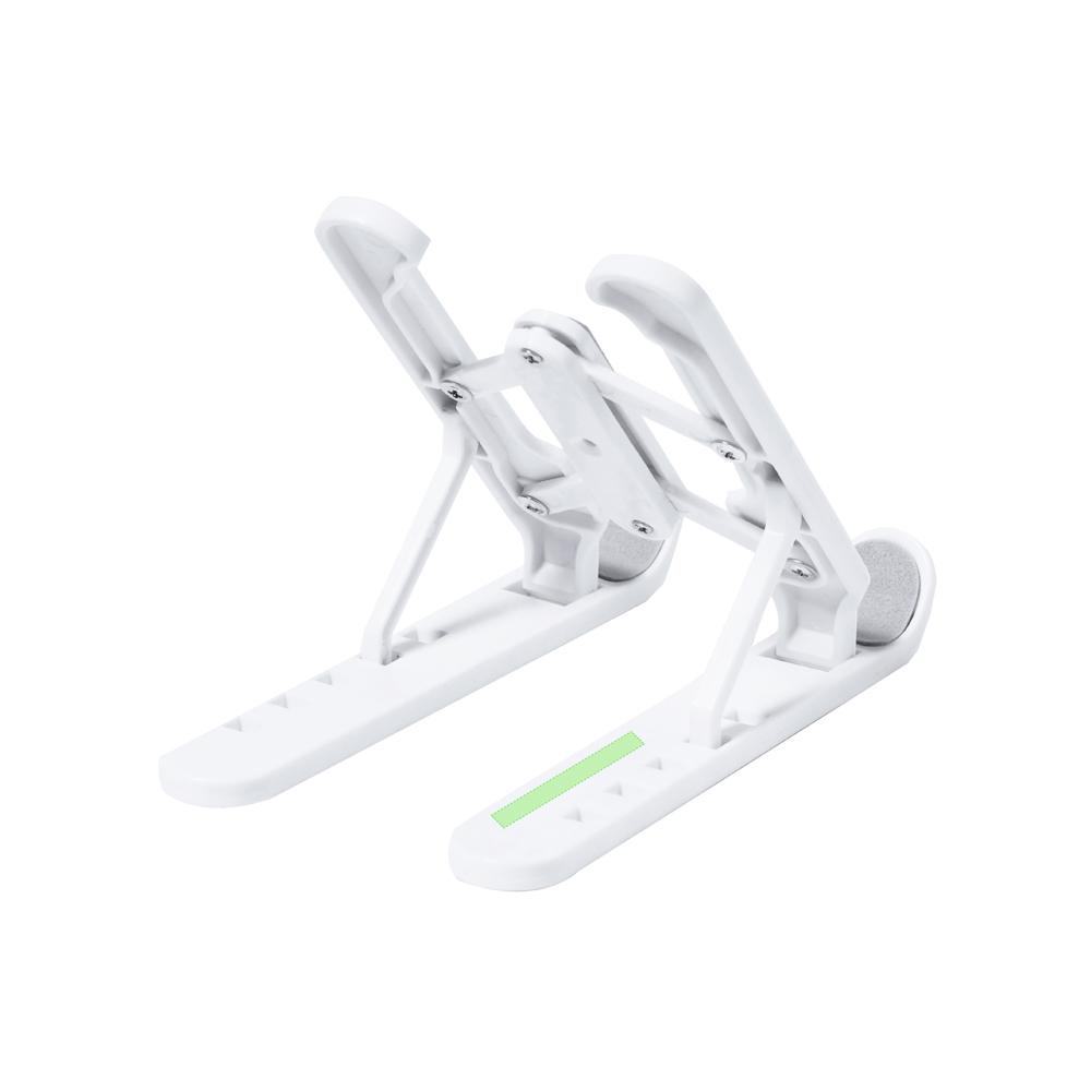 Faltbarer Tablet-Ständer. Hergestellt aus widerstandsfähigem ABS mit rutschfesten Schutzmaßnahmen für einen festen Halt am Gerät in Grau. Höhenverstellbar in 5 Positionen und kompakt zusammenklappbar.