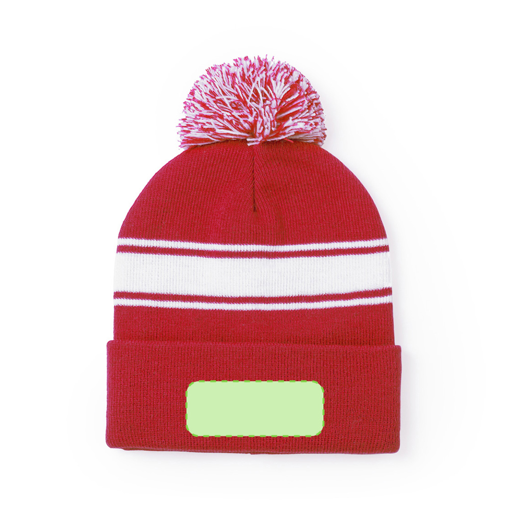 Weiche und warme Mütze aus Acryl in einer Vielzahl von Farben. Mit originellem Design, weißem Streifen und farblich passendem, zweifarbigem Bommel.