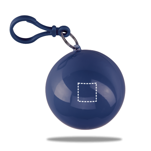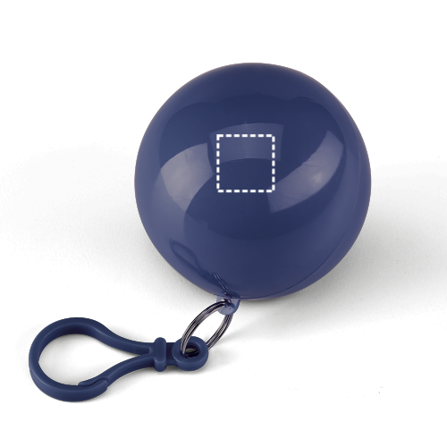 Wasserdichter Regenponcho. Geliefert in einer Kugel mit Karabinerhaken, die als Schlüsselanhänger genutzt werden kann. ø63 mm | 1200 x 900 mm
