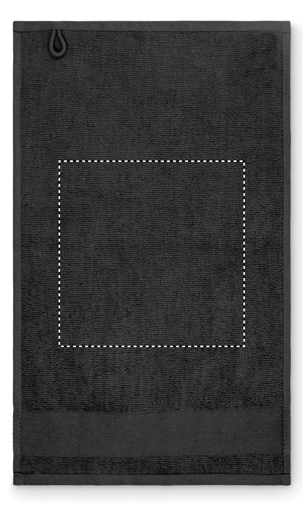 Gästehandtuch aus 100 % Baumwolle 380 g/m² mit Baumwollschlaufe zum Aufhängen. Weich und saugfähig. Größe: 30 cm x 50 cm.