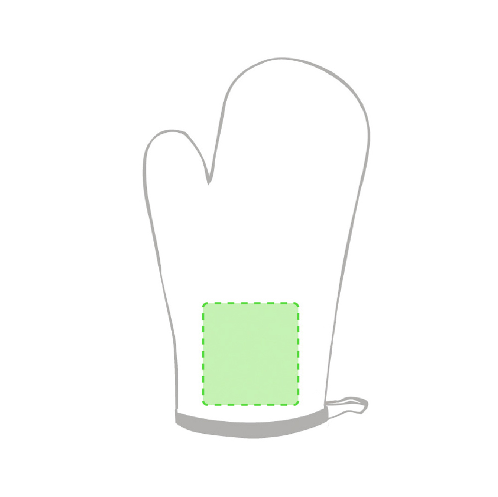 Küchenhandschuh aus der Naturlinie. Hergestellt aus Bio-Baumwollmaterial in hoher Qualität. Mit glatter Seite speziell zum Bedrucken und zum Aufhängen. Bio-Baumwolle Etikett.