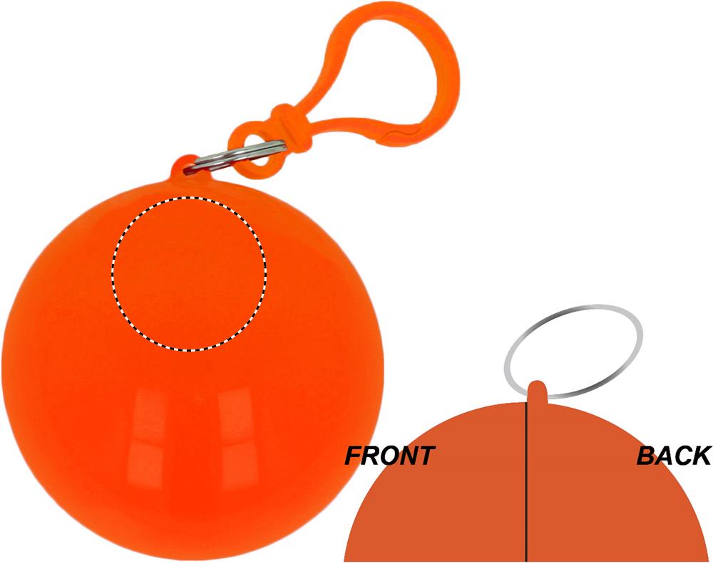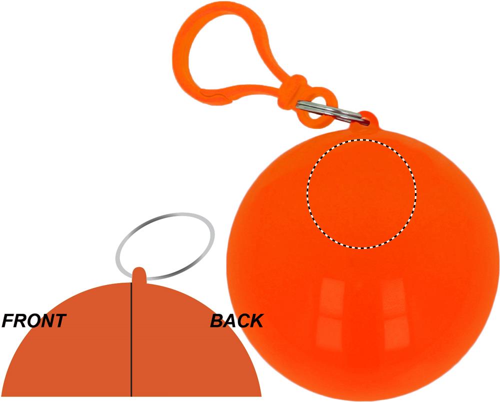 Regenponcho in einer Kunststoff Kugel. Der Poncho ist transparent. Inklusive Karabiner zum Anhängen.