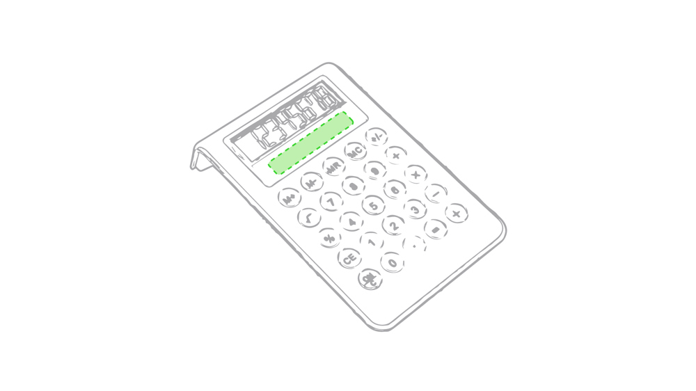 8-stelliger Taschenrechner mit originellem, zweifarbigem Design in lebendigen Farben und weichen, transparenten Tasten. Knopfzelle mit Schutzfolie inklusive. Präsentiert in einer individuellen Box.
